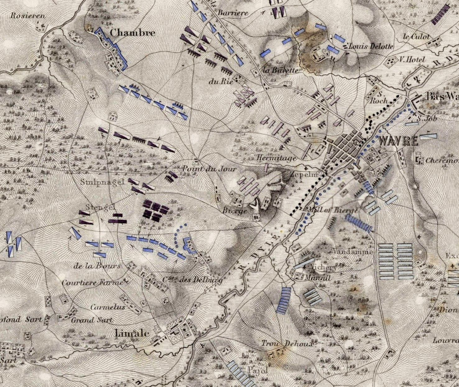 La bataille de Wavre est certainement la moins connue des grands affrontements de la Campagne de Belgique. Elle opposa l'arrière-garde prussienne composée du 3ème corps (Gl von Thielmann) aux 3ème et 4ème corps d'infanterie française, soutenus par le 2ème corps de cavalerie (Gl Exelmans) sous les ordres du maréchal Grouchy.