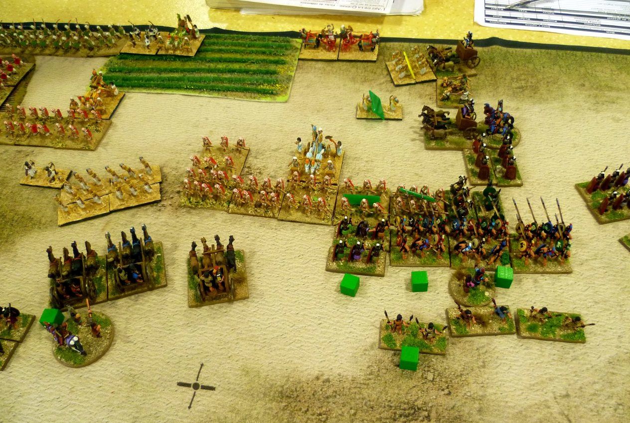 Hervé lance son attaque d'aile, mes chars bousculent les archers qui leur font face... les bagages sont pris et le centre égyptien craque ce qui met fin à la bataille.